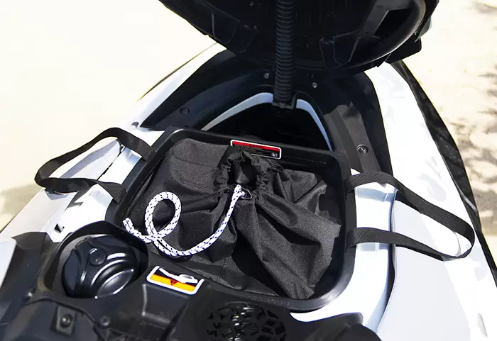 Conta com compartimento estanque para celular, sistema LinQ de engate traseiro, assento Ergolock bi-partido, modos de pilotagem ECO e Sport, amplo compartimento frontal de 144 L e sistema de áudio Premium BRP opcional.