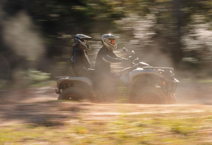 Suspensão dianteira e traseira com novos braços em A, buchas de suspensão e distância livre do solo aumentada proporcionam muito mais estabilidade e conforto na pilotagem.