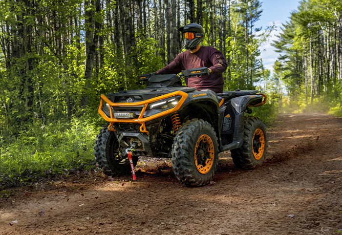 Equipado com amortecedores dianteiros e traseiro Fox 1.5 Podium QS3, direção dinâmica assistida de modo triplo (DPS), guincho com capacidade para 1.588 kg (3.500 lb), diferencial dianteiro autoblocante Visco-4Lok, para-choques dianteiros e traseiros reforçados, rodas de alumínio fundido de 14 polegadas com pneus Maxxis Bighorn 2.0 de 27 polegadas, defletores de vento no guidão, mostrador digital multifunção de 7,6 polegadas e muito mais.