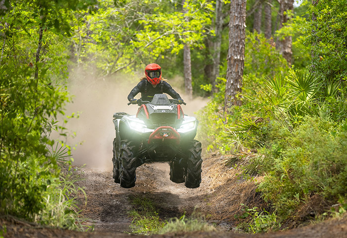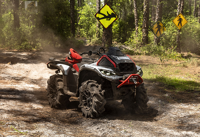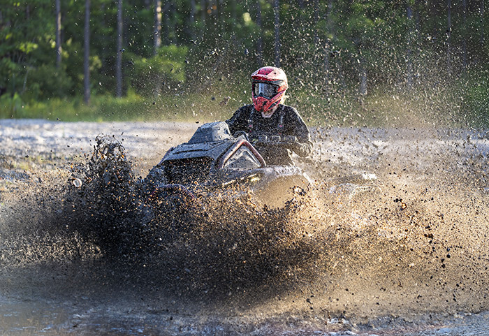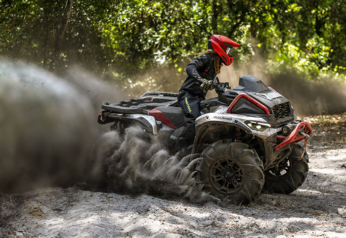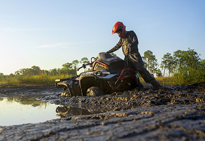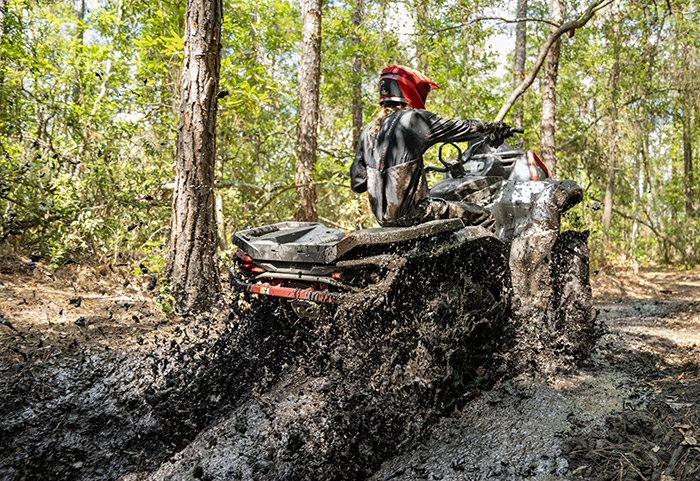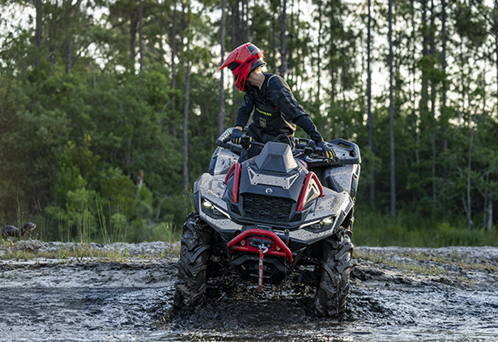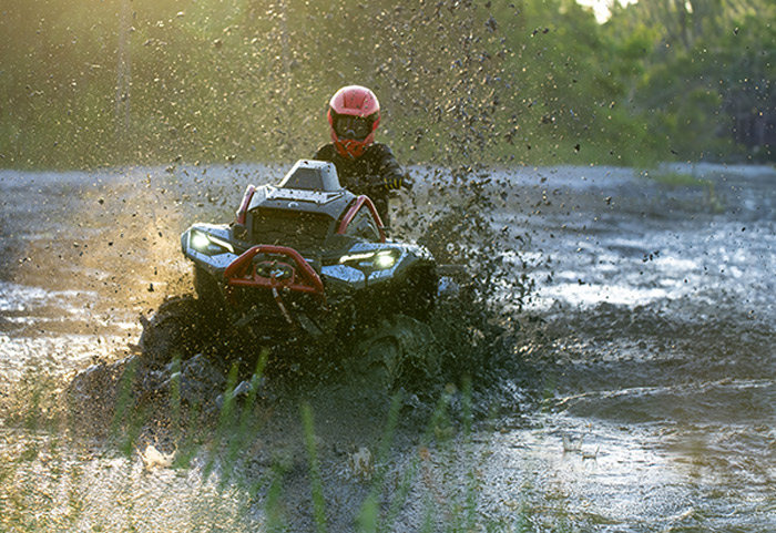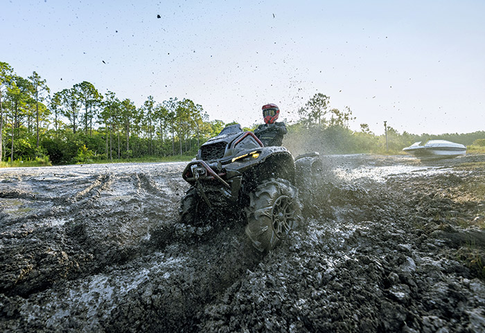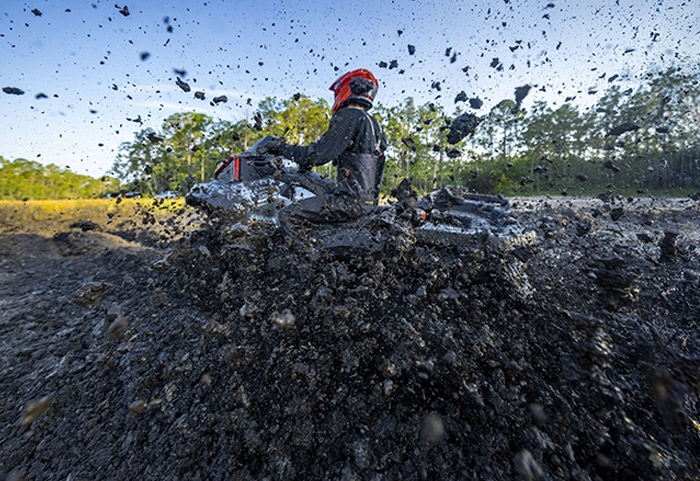 Um quadriciclo projetado especificamente para enfrentar grandes lamaçais. Potente motor Motor V-Twin 999 cc com 101 hp, DOHC, transmissão CVT com marcha extra reduzida L, direção dinâmica assistida (DPS) de modo triplo, diferencial dianteiro Visco-4-Lok, amortecedores dianteiros e traseiros à gás, sistema de snorkel, refrigeração líquida e radiador reposicionado, rodas e pneus que permitem enfrentar os terrenos mais enlameados e desafiadores.