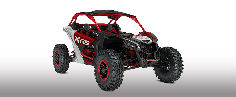 Can-Am Maverick X3 X RS Turbo RR equipado com suspensão Smart-Shox com valvula DDA. Potência e esportividade com motorização ACE com turbo e intercooler e 200 HP de potência, sistema de aceleração inteligente iTC, transmissão CVT de resposta rápida QRS-X, cabine Ergo-Lok com design focado no piloto, diferencial dianteiro autoblocante Smart-Lok, direção dinâmica assistida (DPS) de modo triplo, amortecedores Fox 2.5 Podium Piggyback com by-pass e Smart-Shox, suspensão dianteira e traseira com curso de 22 e 24 polegadas e rodas de 15 polegadas em alumínio equipadas com pneus XPS Trac Force 32.